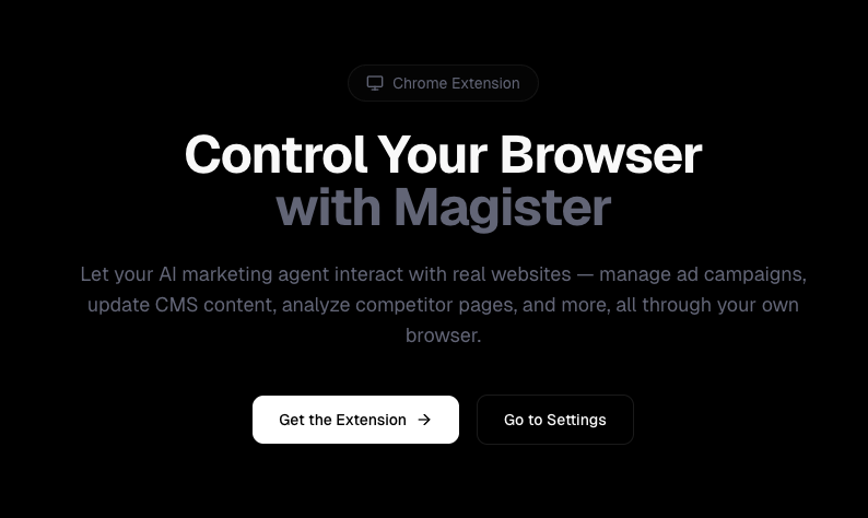 So we built a Chrome extension that lets Magister control your browser. Tell it what to do and watch it navigate, click, search, and extract data from real websites.