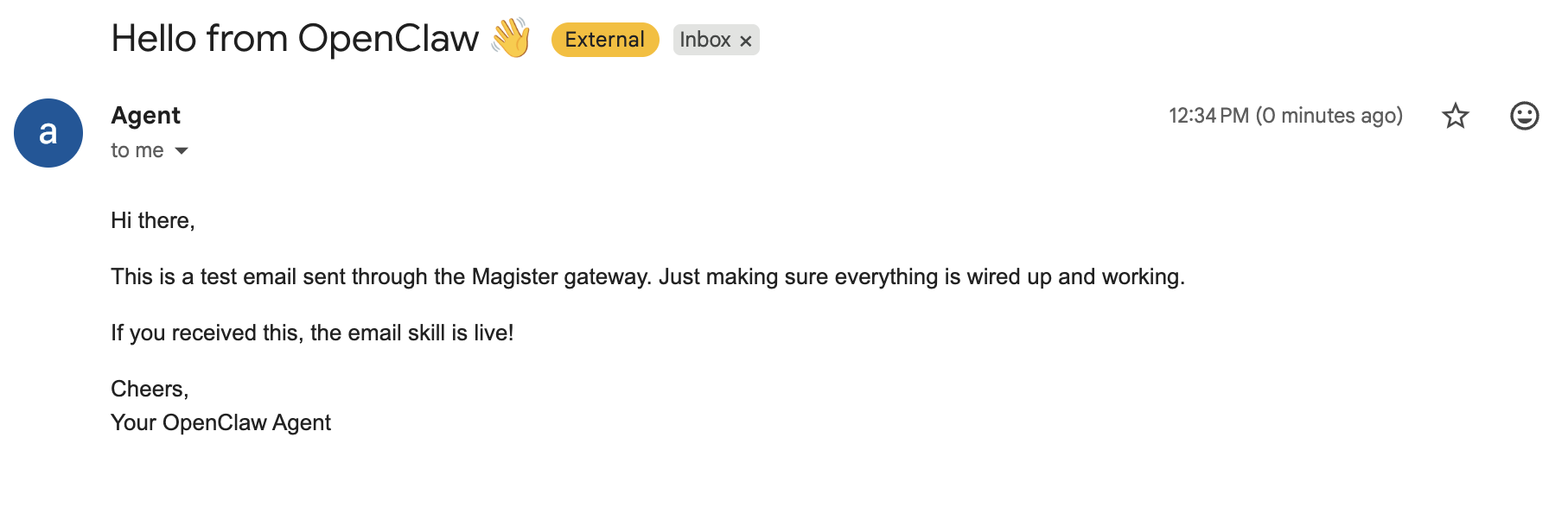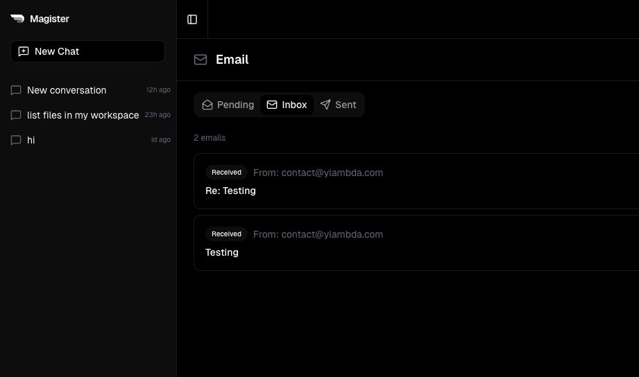 Every Magister agent now gets its own email address. It can send and receive emails autonomously — no forwarding, no API keys, no setup.